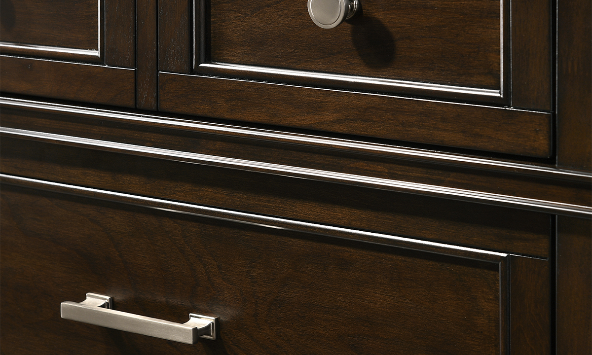 This beautifully crafted dresser offers both practicality and elegance, making it the perfect addition to your bedroom decor. With its cherry finish, the dresser adds a touch of sophistication to any space. The rich color enhances the natural beauty of the poplar solids and birch veneers, creating a warm and inviting atmosphere in your bedroom. The dresser features six large storage drawers, providing ample space to keep your clothing, accessories, and other essentials organized. Whether it's sweaters, jeans, or accessories, you'll have plenty of room to store your belongings. Equipped with smooth ball bearing drawer guides, the drawers effortlessly glide open and closed, allowing for easy access to your items. The sturdy construction ensures long-lasting durability, so you can enjoy this dresser for years to come. Not only does the Waterpointe Cherry 6-Drawer Dresser offer functional storage, but it also adds a touch of elegance to your bedroom. The clean lines and classic design make it a versatile piece that complements various decor styles, from traditional to contemporary.