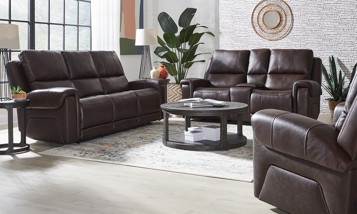 Burton Walnut Leather Triple Power Sofa