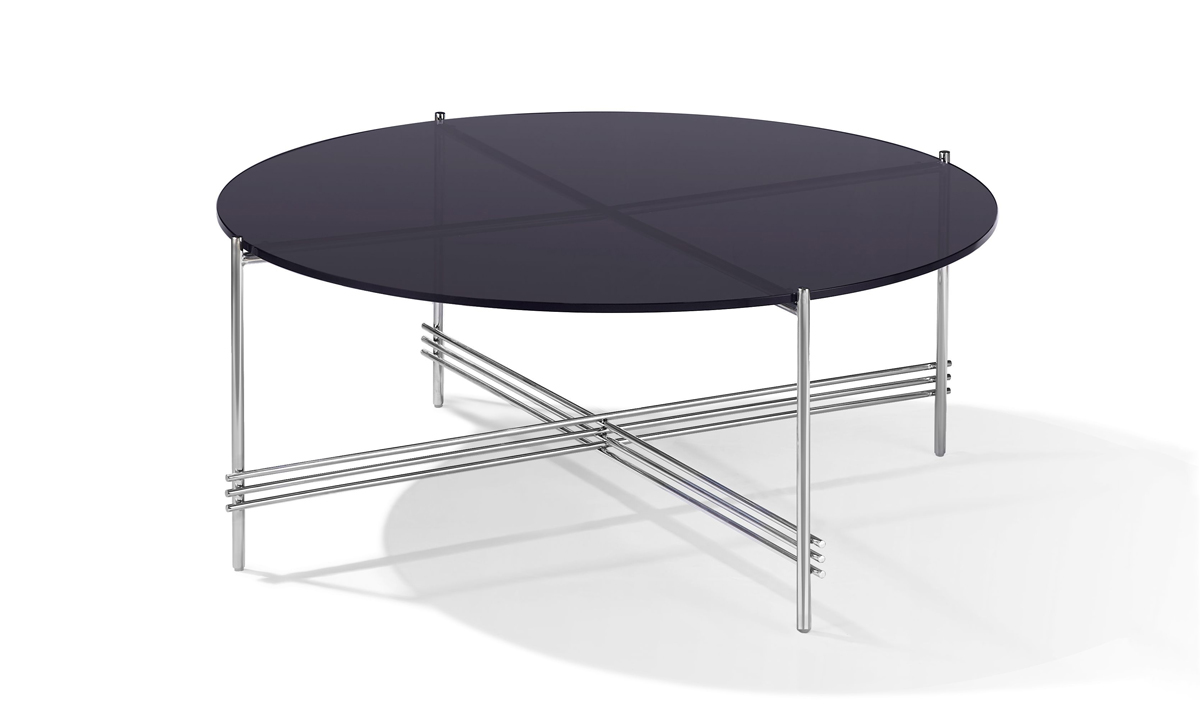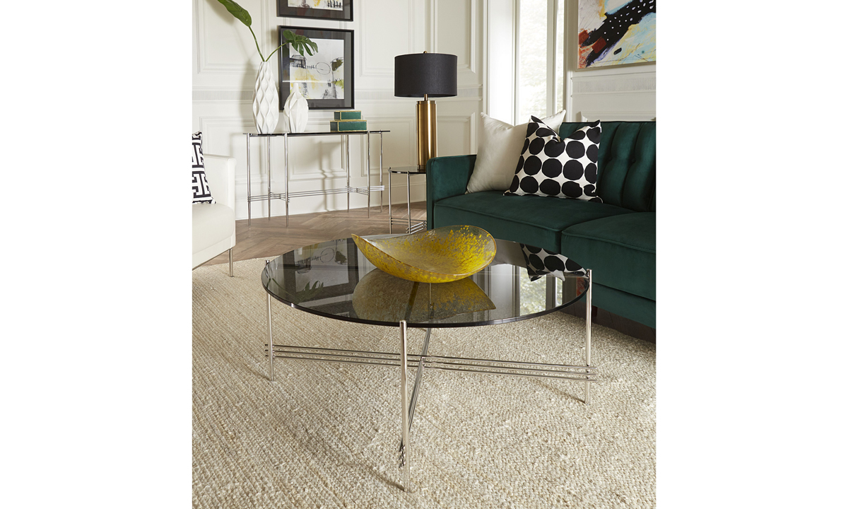 Don’t just fill a space, give it life with this Smoke Glass Cocktail table featuring chrome base, triple beam crossbars, striking smoke glass top finish and non-marking nylon feet.