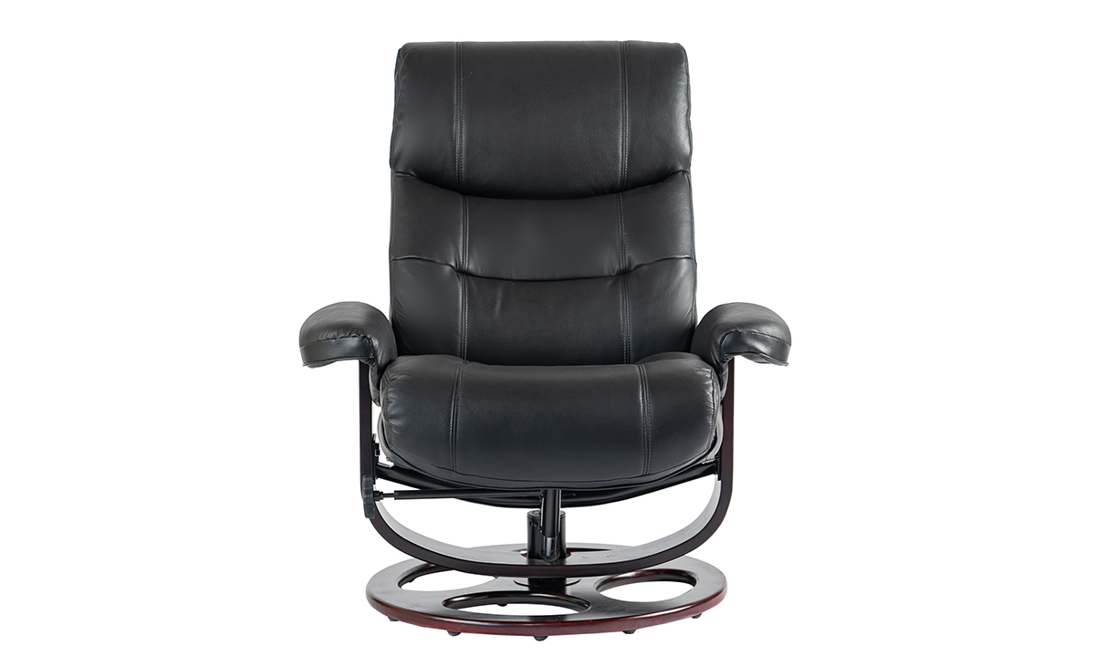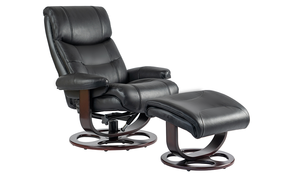 Dawson Black Leather Recliner and Ottoman