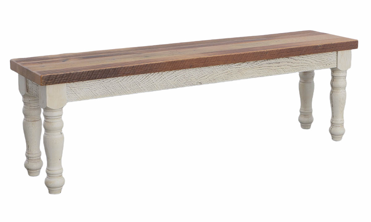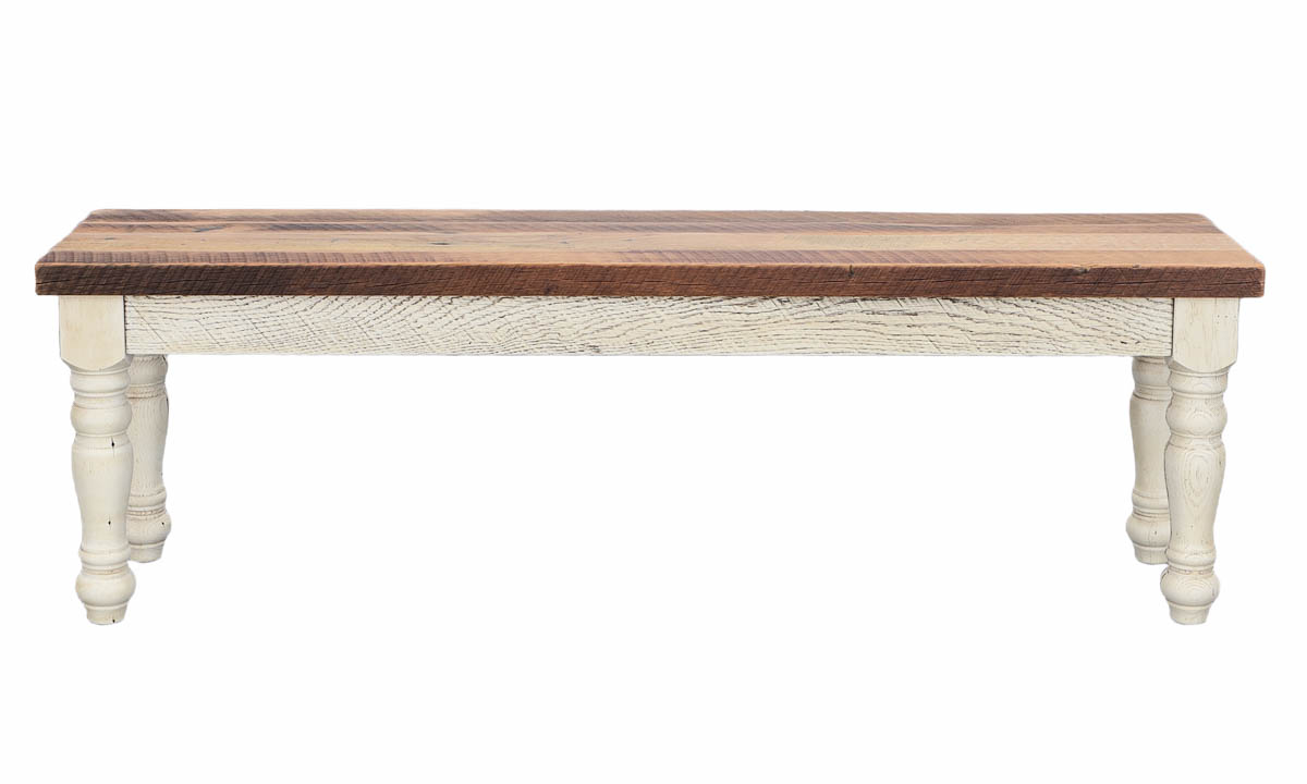 Discover the timeless charm of the Sugarcreek Dining Bench by Grain. Handcrafted with farmhouse-style turned legs and reclaimed barnwood oak, it brings durability, history, and rustic elegance to any space.