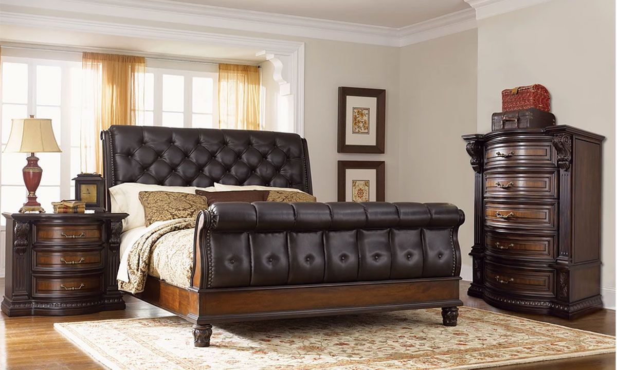 Grand Estates Tufted Leather Sleigh Bedroom Sets