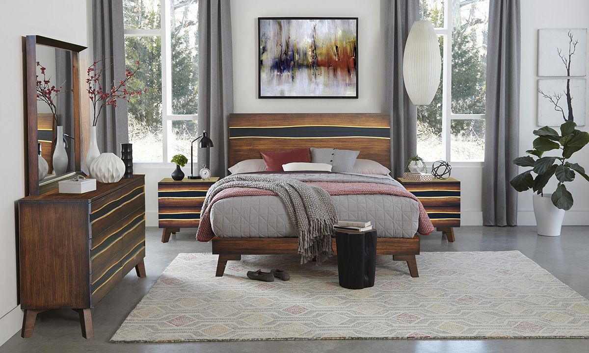 Unique six-drawer dresser pairs a modern silhouette and striking striped accents with sustainably sourced Brazilian Pine construction.