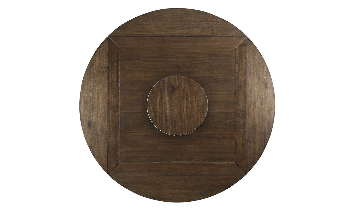• Converts from 40” square surface to 59” round surface with double drop-leaf extensions