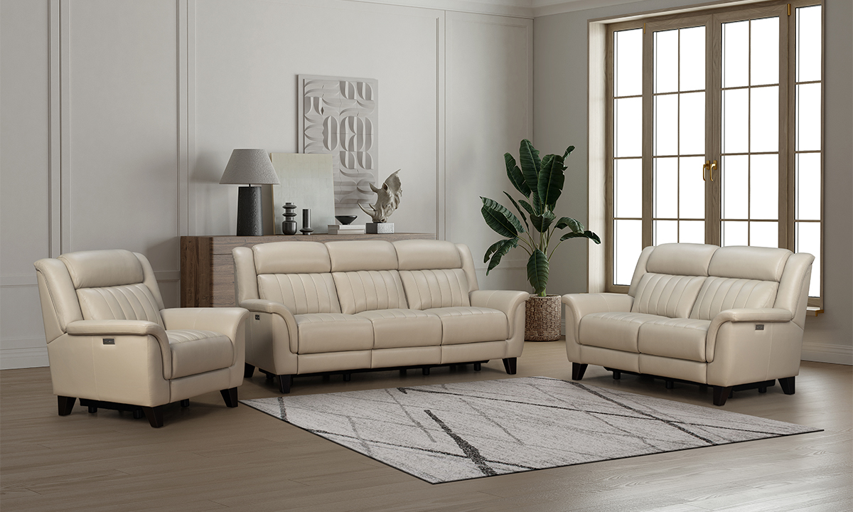 Kimball Cream Leather Dual Power Recliner