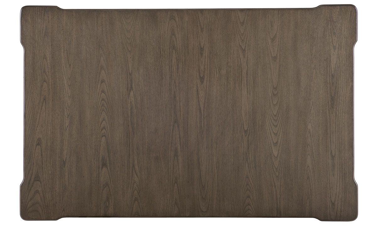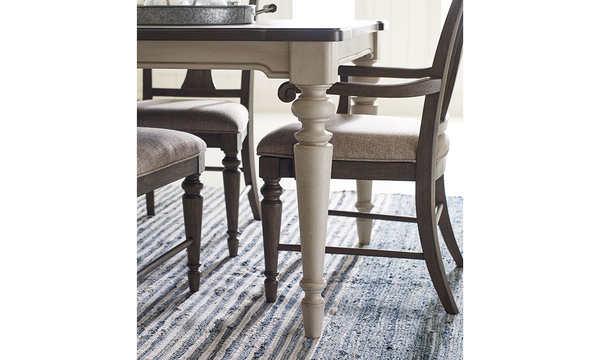 The Brookhaven extendable leg dining room table is made from poplar solids and flat cut elm veneers with contrasting finishes in vintage linen and rustic dark elm. Table seats up to 8 and includes an 18-inch leaf.