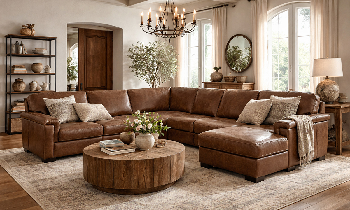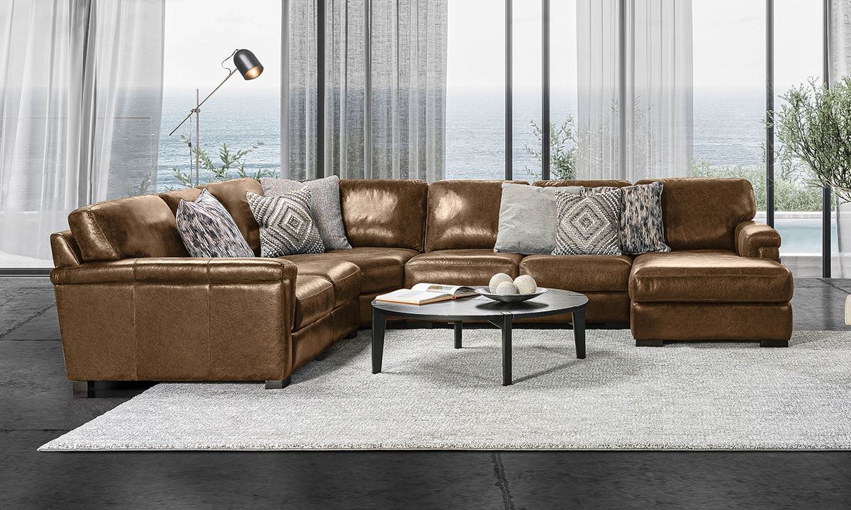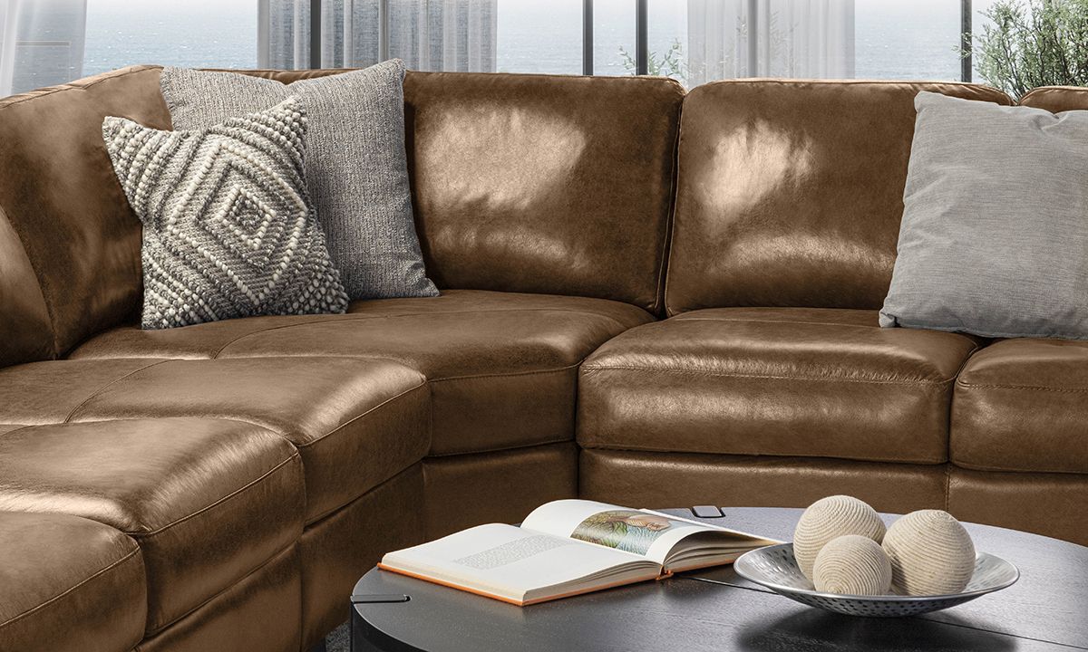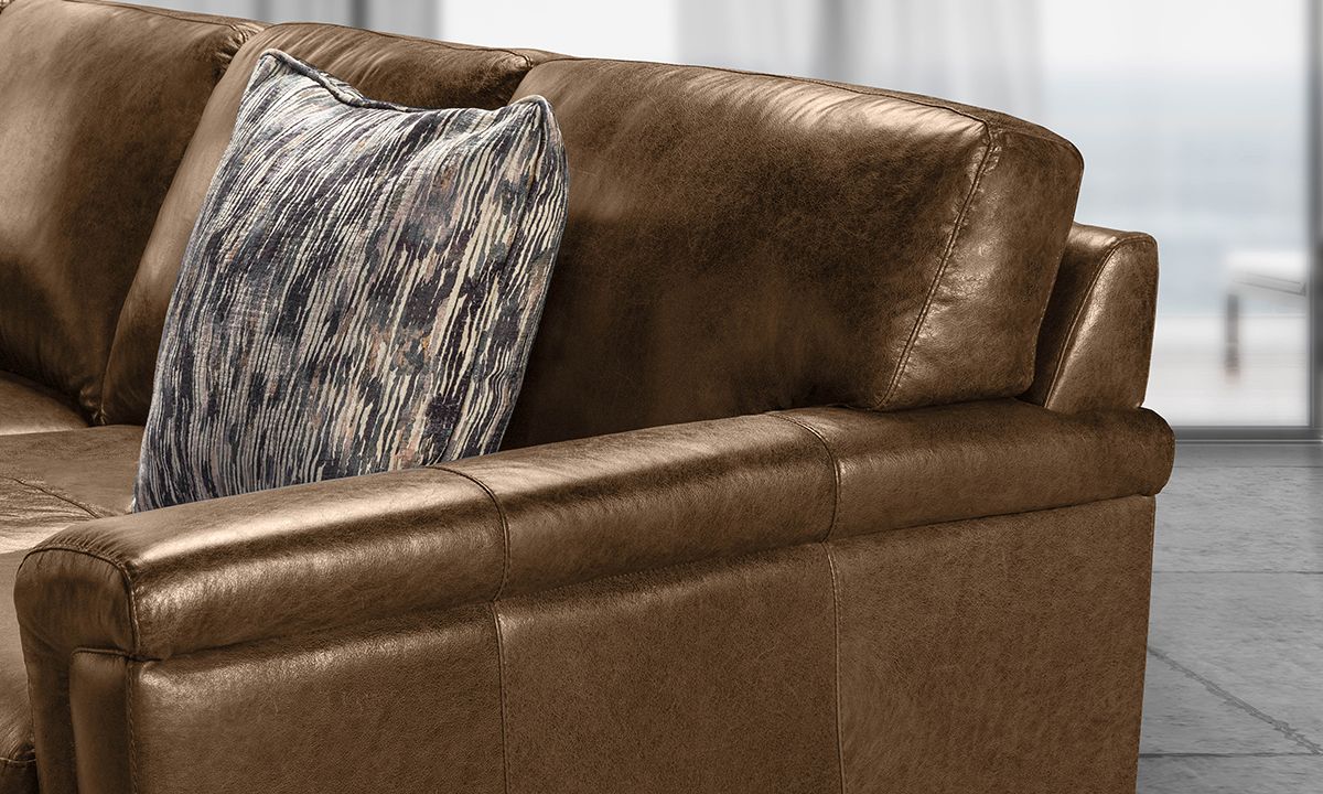 Completely hand-tailored in top grain Italian leather and distinguished by a low-slung profile and contemporary layover armrests, the Medici Chestnut Leather Collection is designed to make a lasting impression. Carefully handcrafted in Italy for lasting looks and comfort, these premium sectionals start with solid hardwood frames and Pirelli webbed support systems, which are then completely wrapped in allover foam padding and high-density foam cushions. The rich chestnut brown color lends a timeless feel to the contemporary look while capturing the soft, luxurious feel of premium top grain leather that will only get better with time.