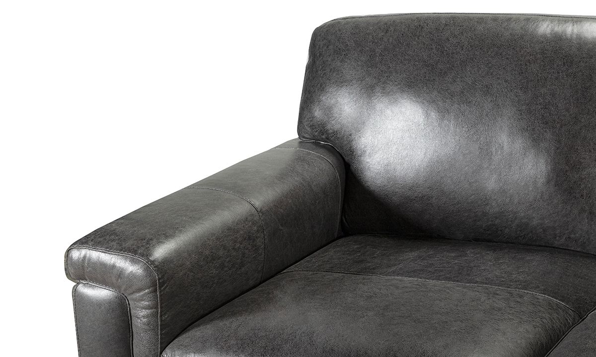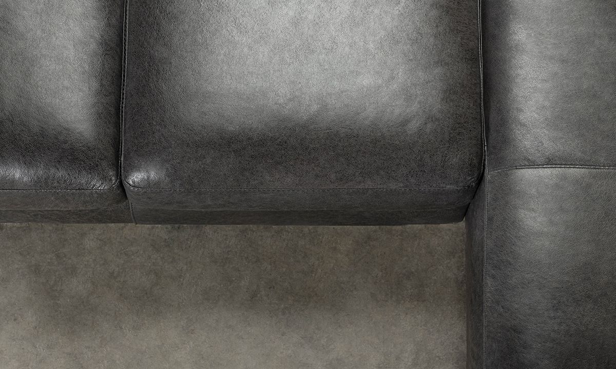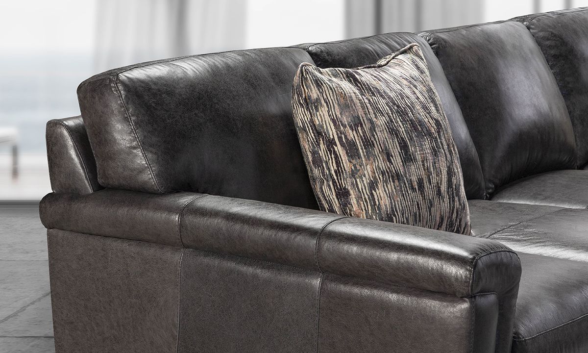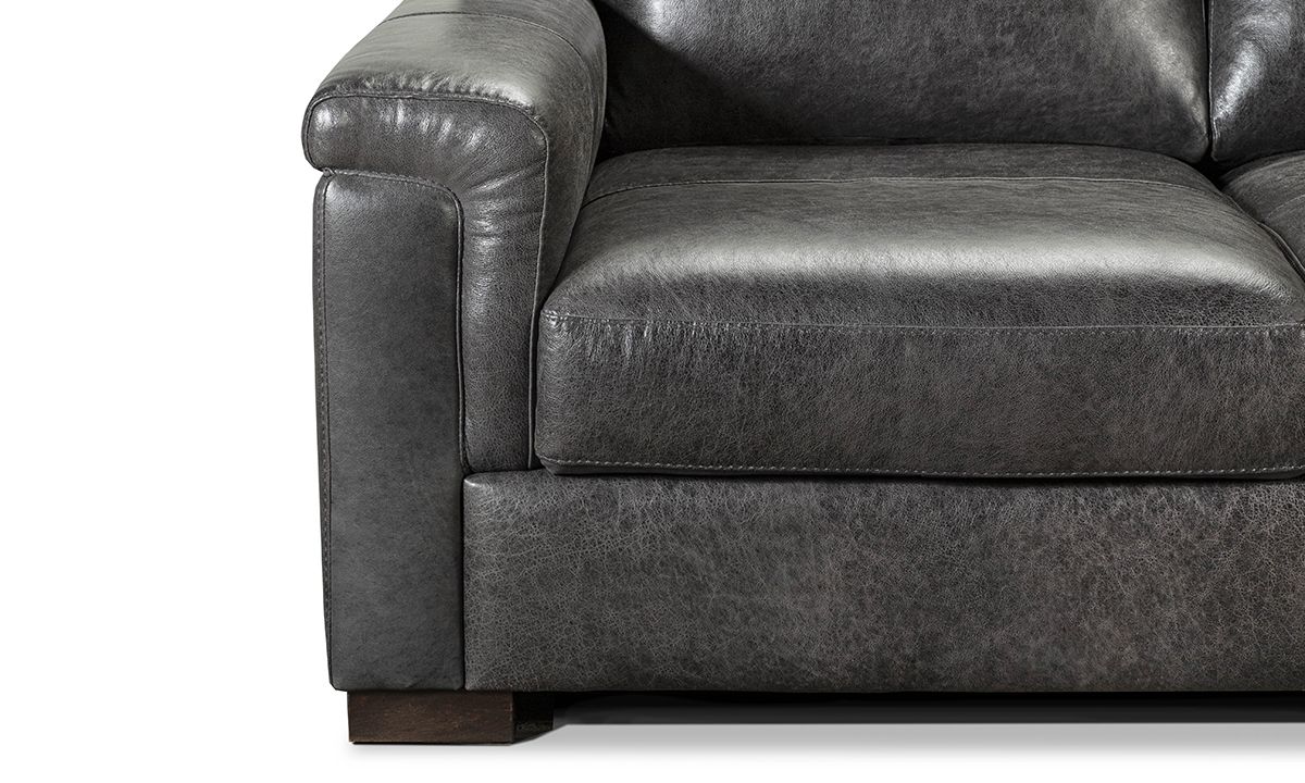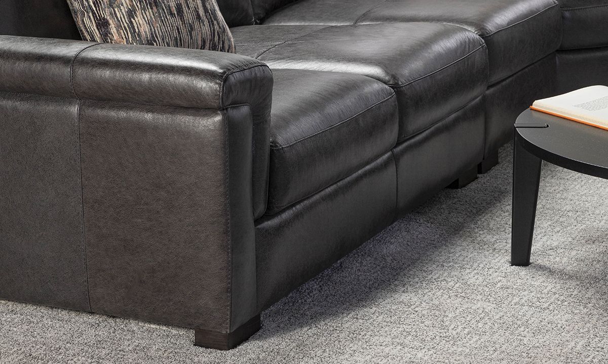 Completely hand-tailored in top grain Italian leather and distinguished by a low-slung profile and contemporary layover armrests, the Medici Gray Leather Collection is designed to make a lasting impression. Carefully handcrafted in Italy for lasting looks and comfort, these premium sectionals start with solid hardwood frames and Pirelli webbed support systems, which are then completely wrapped in allover foam padding and high-density foam cushions. The rich gray color leather upholstery lends a timeless feel to the contemporary look while capturing the soft, luxurious feel of premium top grain leather that will only get better with time.