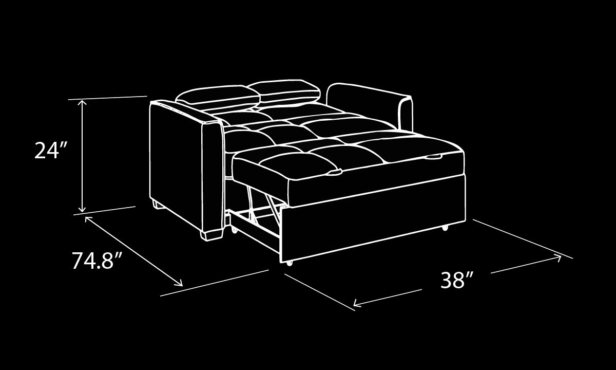 Form, function and fun await when you add the Nantucket sleeper chair to your living space. Encompassed within the contemporary silhouette of this chair is a pocket-coil innerspring support system wrapped in high-density foam cushions which is then wrapped in soft, easy-clean cappuccino micro-suede upholstery. Clean, angular lines and stylish tufting define the look of this polished piece and conceal the hidden sleeper functionality, which can be easily accessed by the two pull handles at front and slide forward to reveal a cushioned platform that pops up and sits flush with the existing seat cushion. The chair back also reclines backward into a lounging position for optimal TV viewing or comfortable reading and lays flat to create a twin-size bed with the pop-up platform. Perfect for sprawling out during movie nights or accommodating overnight guests, this sleeper chair is a clever, attractive addition to any space.