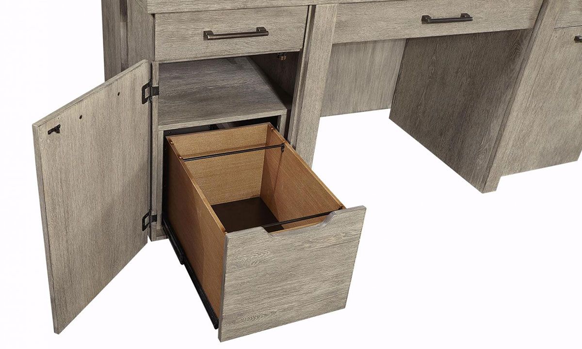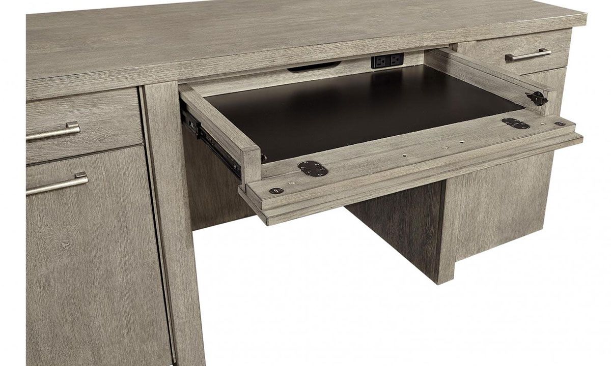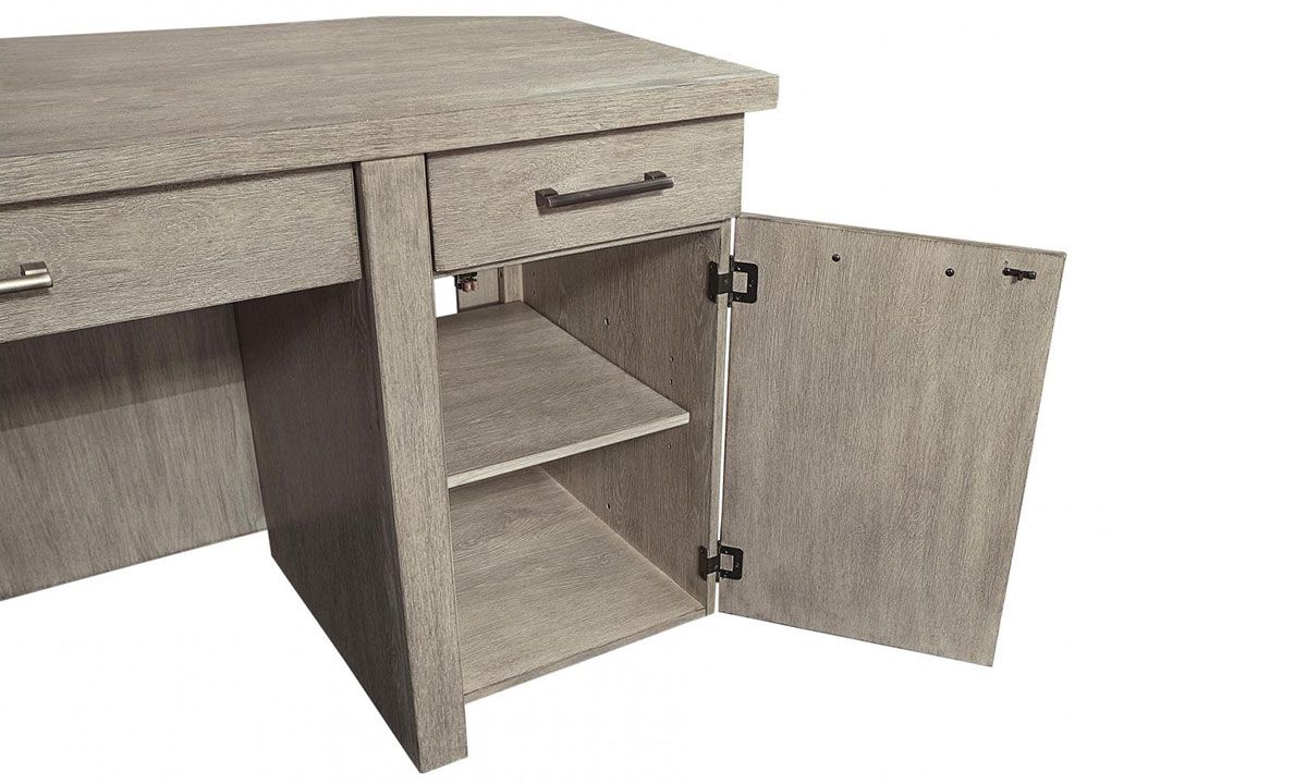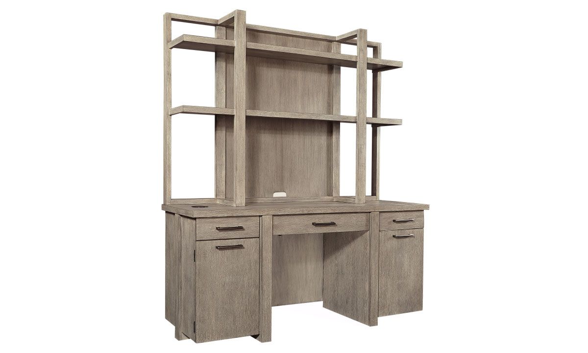 Priced just right, the Aspenhome Linen 2- piece desk with hutch and credenza could be your favorite new workstation. The full unit is composed of urban, contemporary high-quality features and exotic finishes to reflect a particular wood’s character and natural beauty.