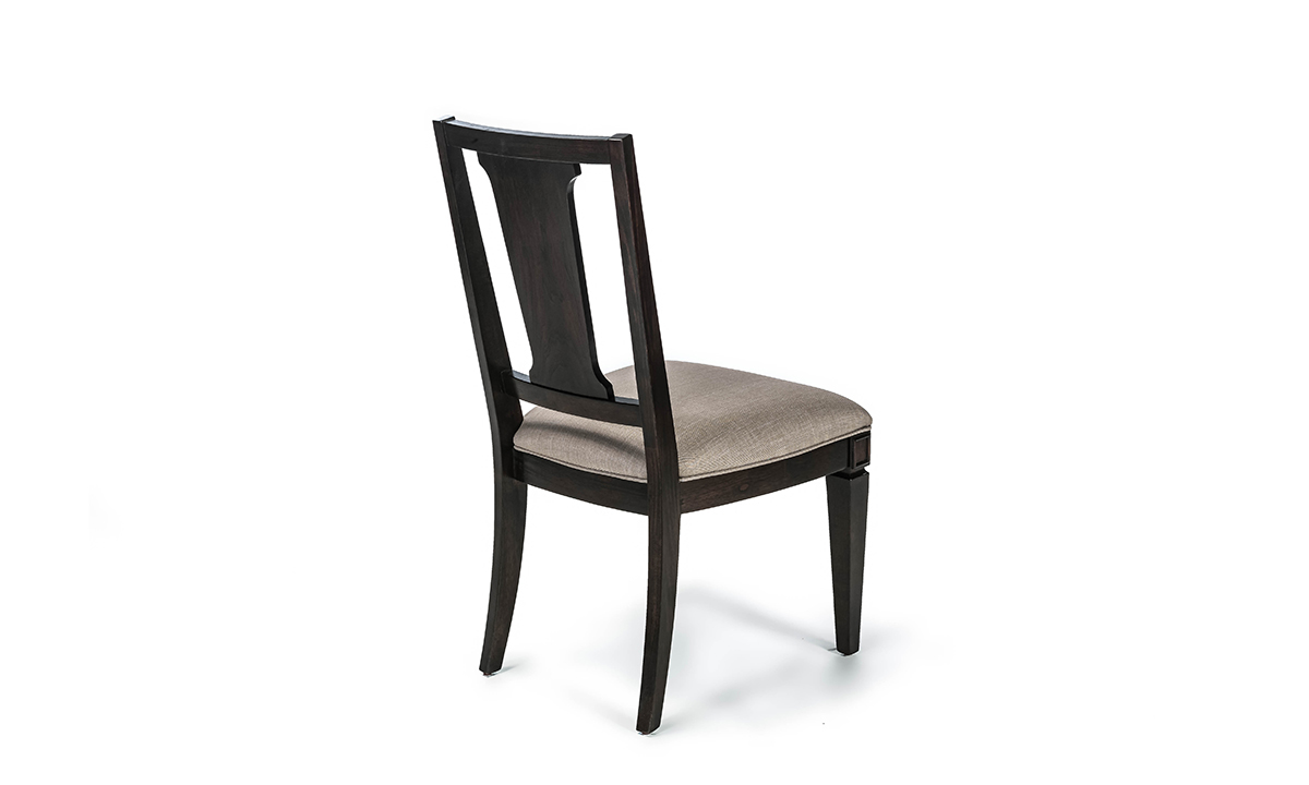 A subtle, relaxed interpretation of a traditional design, the Kensington Walnut Dining Chair lends sophisticated style and comfortable durability to any dining ensemble. Crafted from sturdy Poplar solids and Walnut veneers, the 38-inch tall chair features a warm, Moderne Walnut finish, the deep brown hue and hand applied finishing lend a natural warmth to the timeless silhouette. Thoughtful details, like the curved back splat, elegantly carved tapered legs and soft, neutral-hued upholstered seats balance the traditional look to effortlessly compliment an array of decorative tastes.