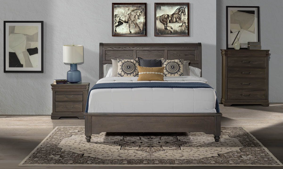 Vista Gray Oak 4-Piece King Sleigh Bedroom Set