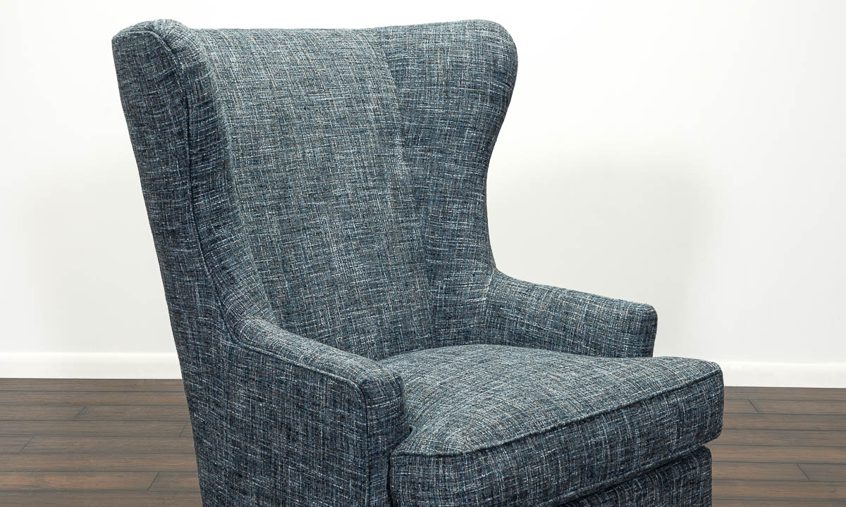 Balancing an elegant wing back silhouette in cool, blue fabric upholstery, this wing chair is versatile and accents any room with ease.